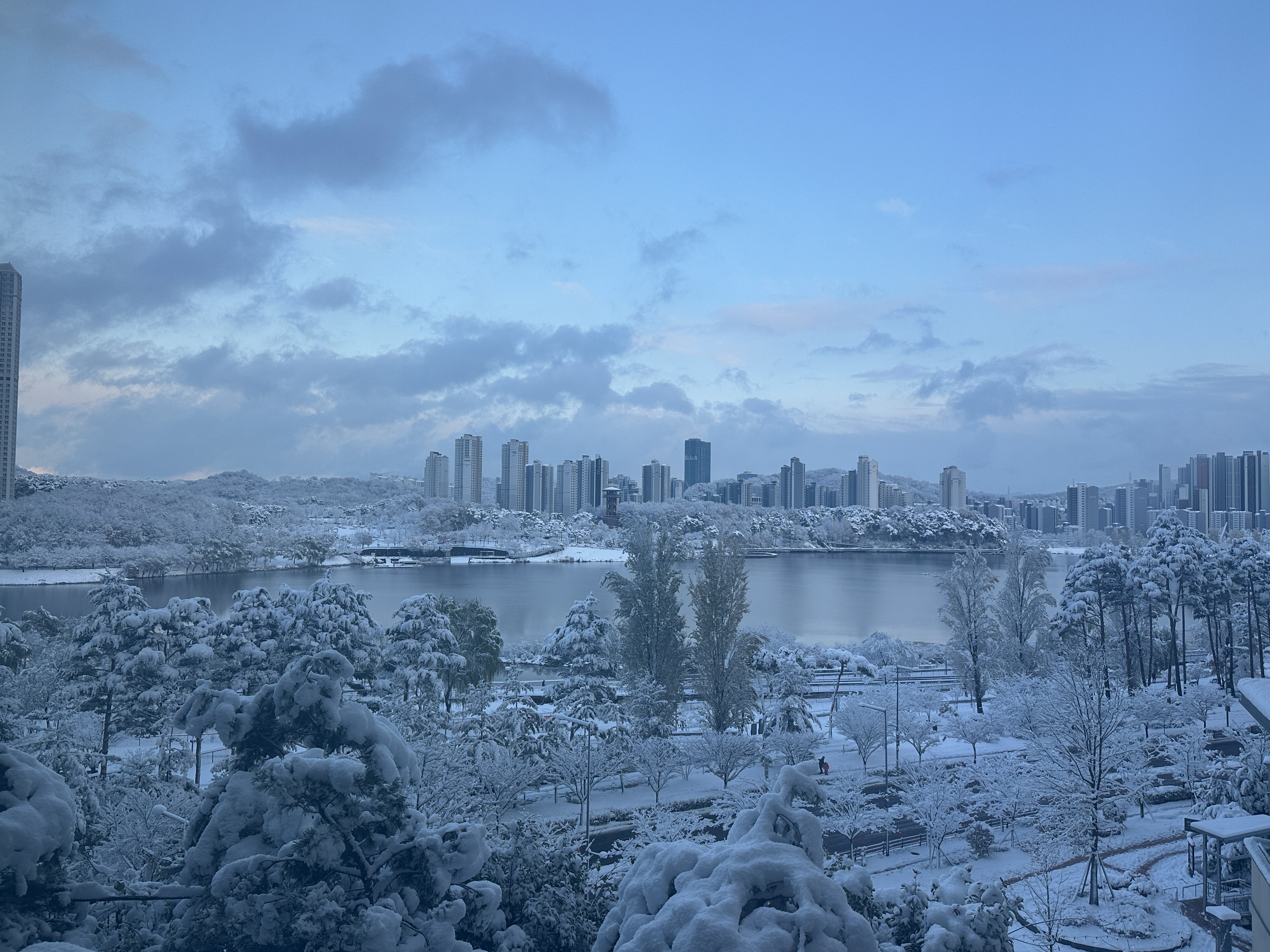 잠시 후 눈이 소강상태에 들어간듯해서 첫눈이 그러면 그렇지, 했었지만