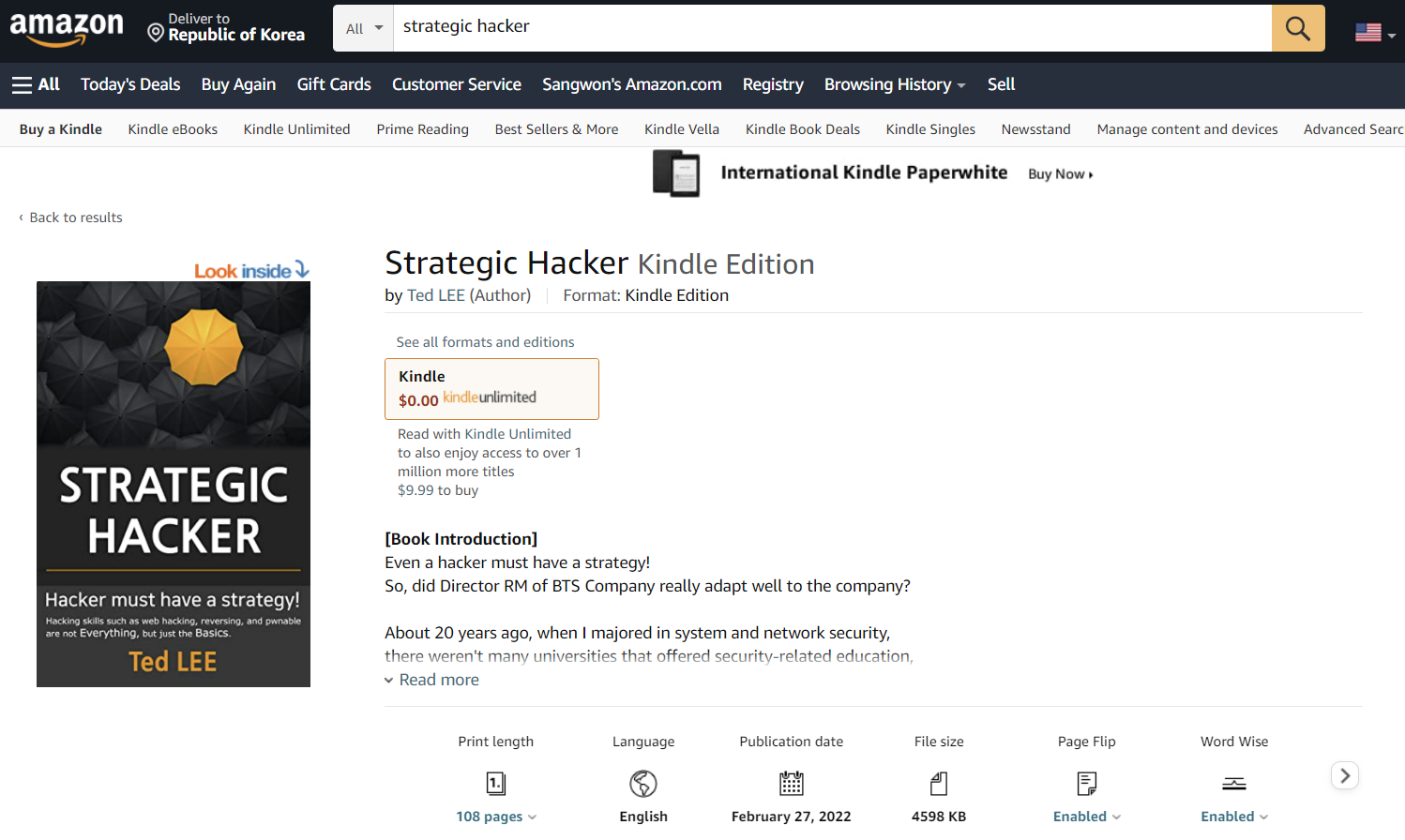 결과적으로 잘 헤쳐나온 덕분에 제 책 #전략적해커 가 마침내 아마존 Kindle에 영어버전으로 출시했습니다!