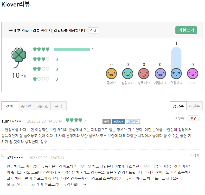 | [에필로그] 독자 피드백 #2 : 잘읽혀요~ (feat.교보문고) (0) | 2022.03.07 |